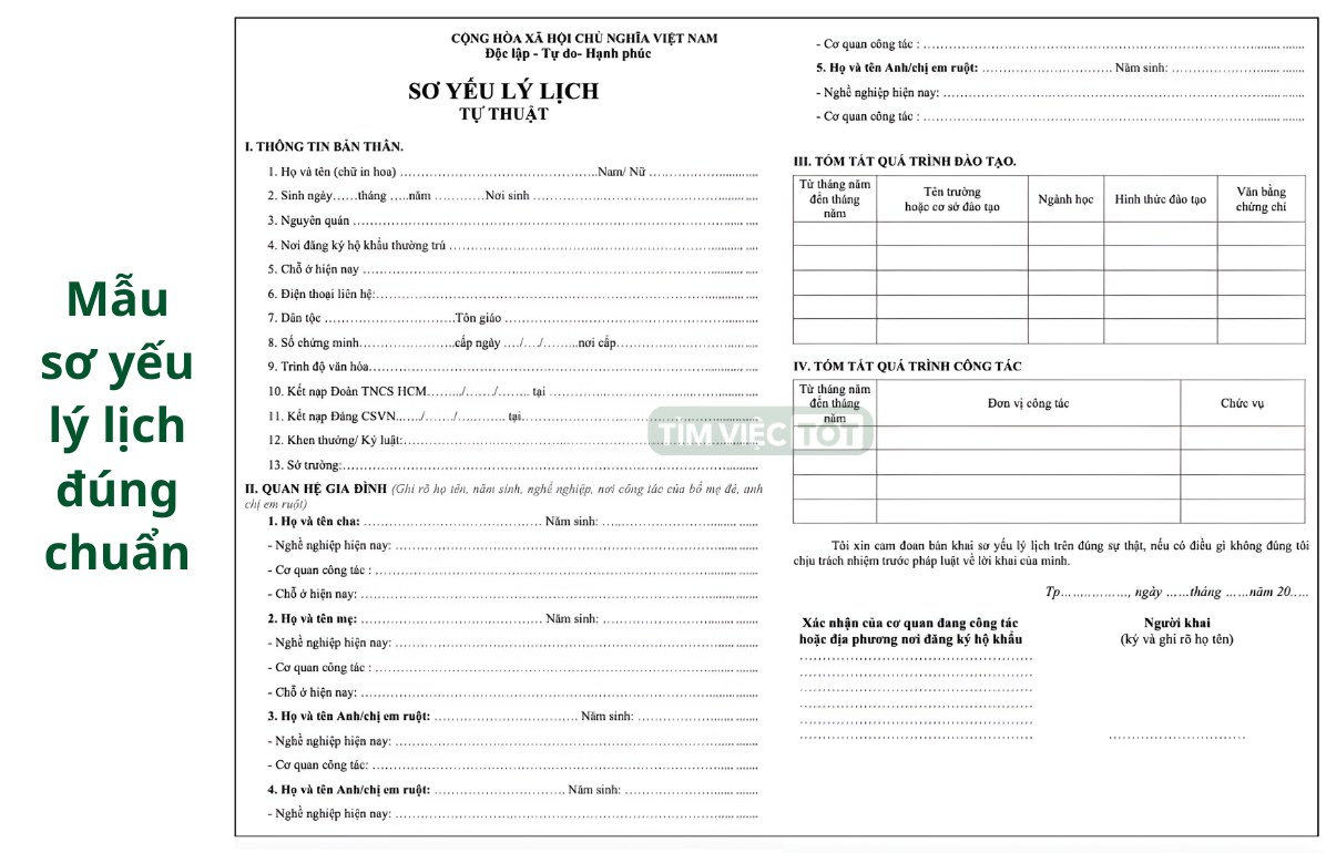 Lưu ý: Khi nộp hồ sơ xin việc, các thông tin kê khai về văn bằng, chứng chỉ trong sơ yếu lý lịch cần được đính kèm bản sao có chứng thực để đảm bảo giá trị pháp lý và tăng mức độ tin cậy với nhà tuyển dụng.