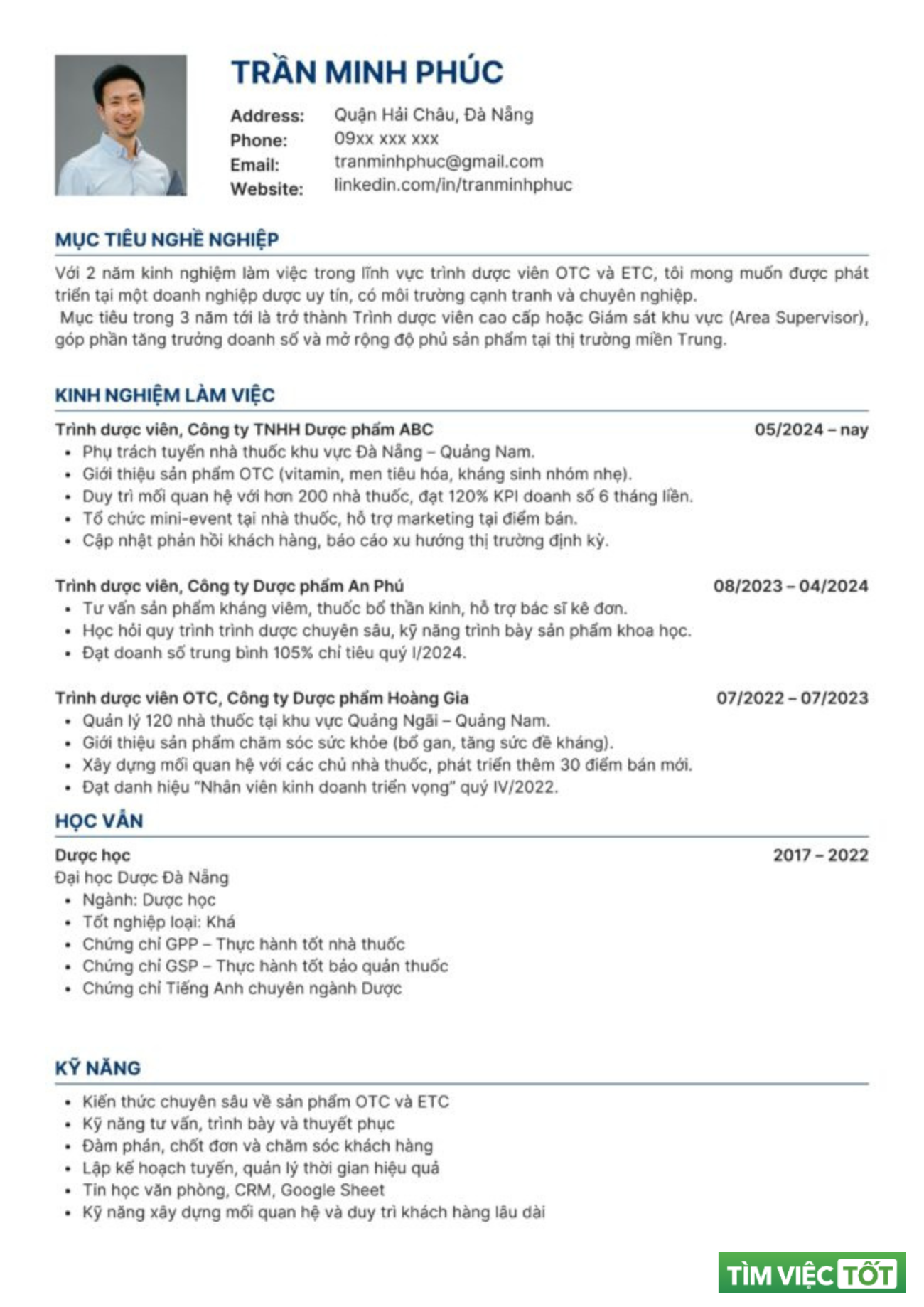 Điểm cộng: Nếu bạn có các chứng chỉ ngắn hạn về "Kỹ năng bán hàng chuyên nghiệp" hoặc "Marketing Dược", đừng ngần ngại đưa vào để làm nổi bật hồ sơ.